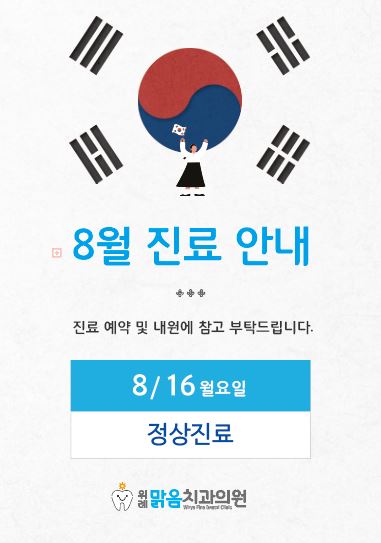 이번 광복절은 일요일로 그 다음날인 8월 16일 월요일이 광복절 대체공휴일로 지정되었습니다.